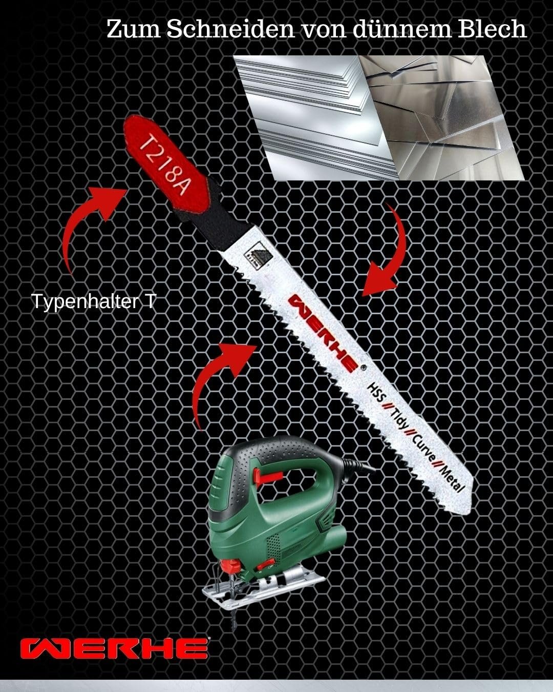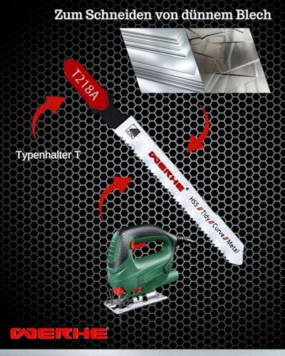 WERHE® Stichsägeblatt T218A 5 Stück – Präzises Metallsägeblatt für Kurvenschnitte in Dünnblech 1-3mm